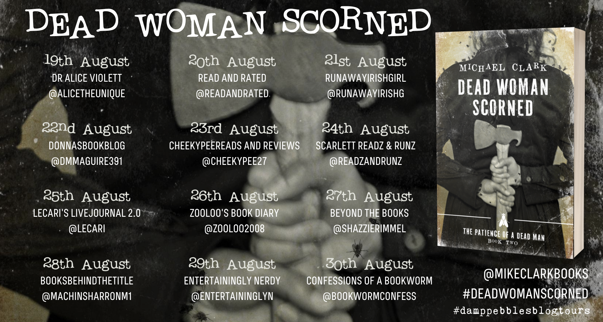 #damppebblesblogtours and @MikeClarkBooks for letting me be a part of this #DeadWomanScorned blog tour.