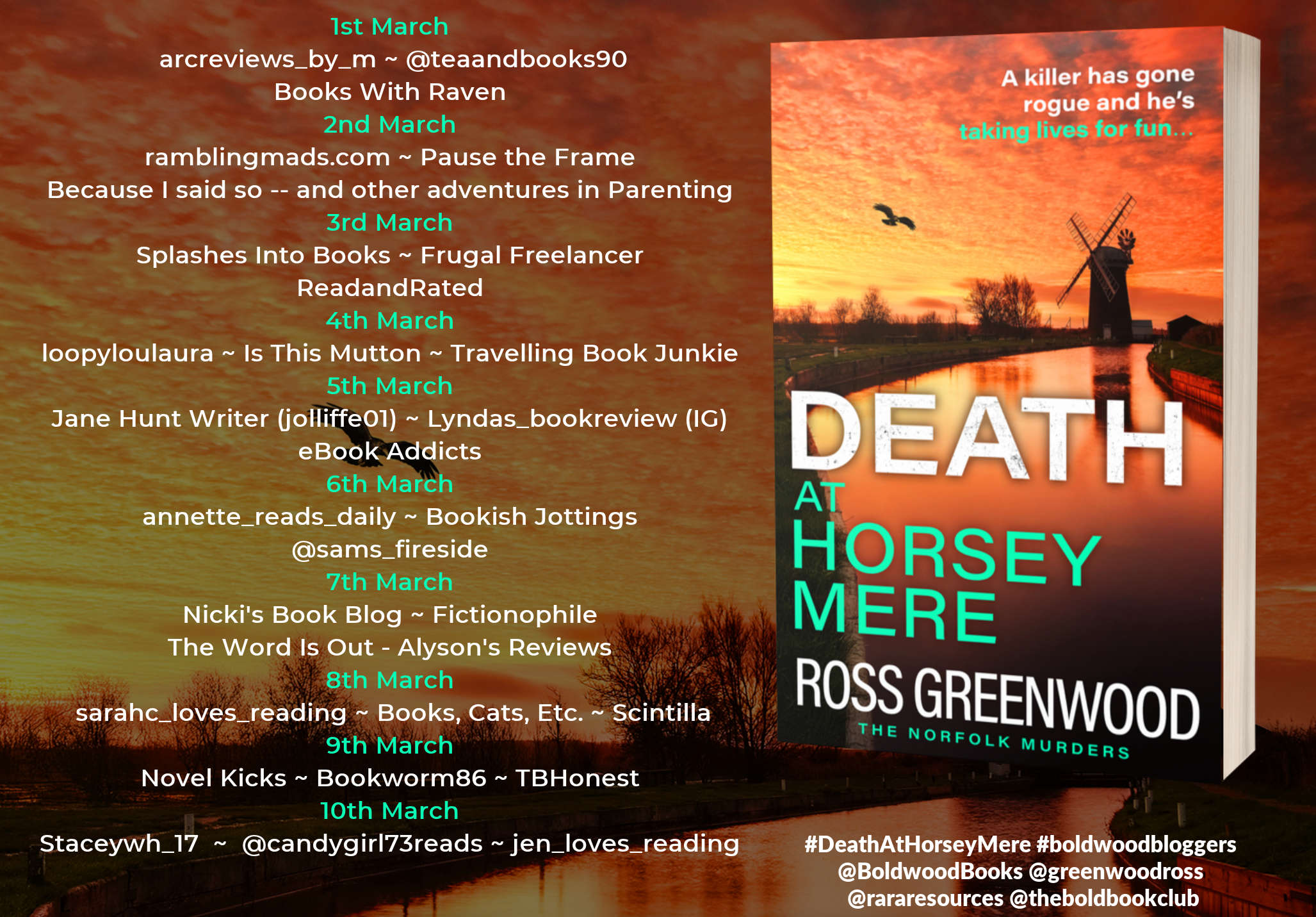Another absolutely brilliant read from this author and it is my pleasure to be a part of the blog tour. My thanks to Ross Greenwood, Rachel’s Random Resources and NetGalley for an ARC in return for an honest review.